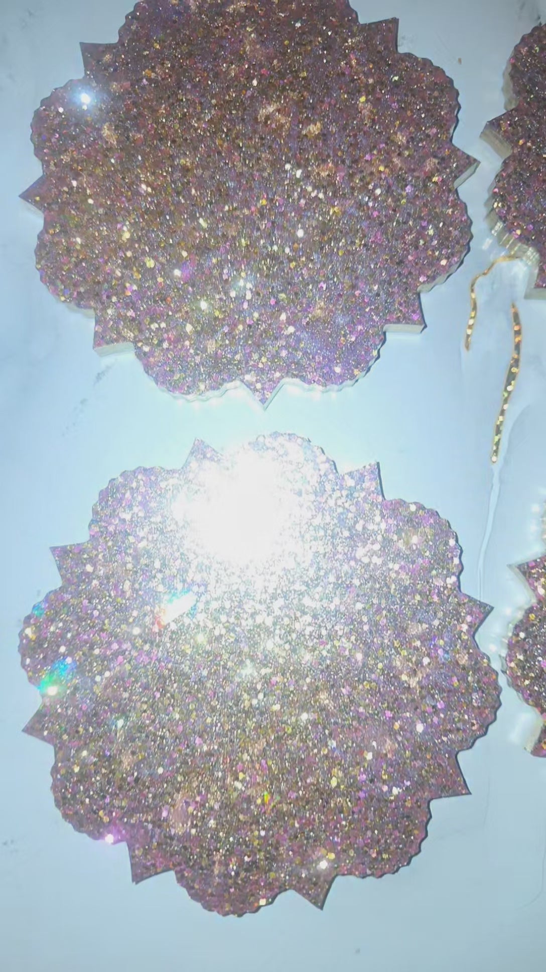 Chaque dessous de verre est entièrement réalisé à la main. Les paillettes, reflets et nuances se répartissent de manière unique, faisant de chaque pièce une création exclusive. Aucune série industrielle : chaque lot est différent, fidèle à l’âme de Nouraya Créations.